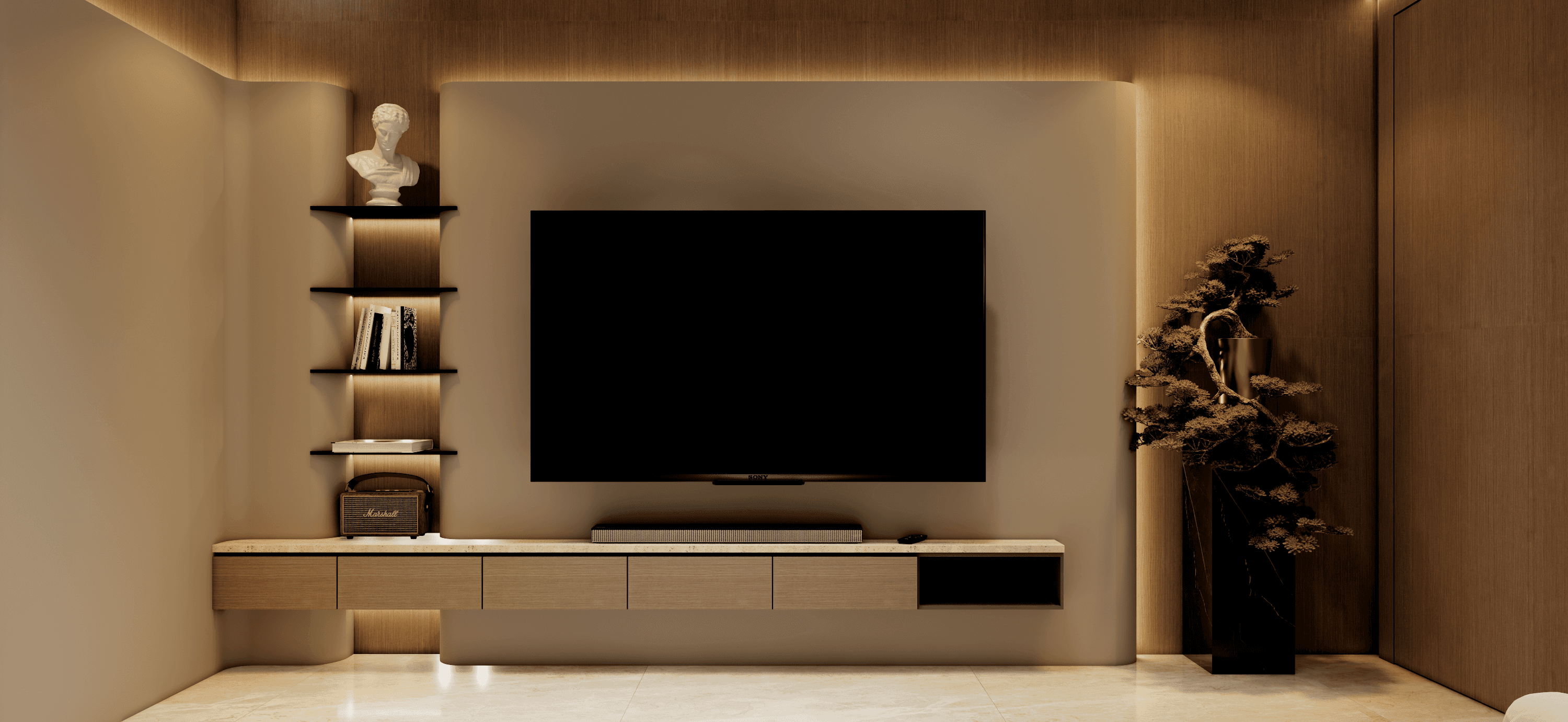 This interior project is designed around modern aesthetics with a strong emphasis on everyday practicality.